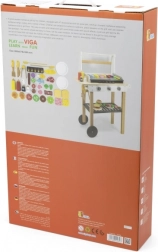 De VIGA kindergrill biedt een authentieke grillervaring in een veilige, hoogwaardige en stabiele houten constructie. Kinderen kunnen spiesen, burgers, hotdogs of sandwiches bereiden en “gasten” bedienen alsof het een echte tuinparty is. Draaiknoppen met klikeffect, een afneembare deksel en een uitschuifbaar rooster ondersteunen realistisch spel en de ontwikkeling van vaardigheid.