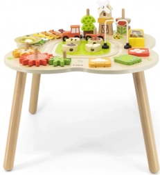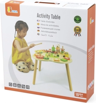 De houten activiteitentafel VIGA PolarB is het ideale speelmidden voor kleine ontdekkers. Dankzij de stabiele constructie en het grote speeloppervlak kunnen meerdere kinderen tegelijk spelen. Zorgvuldig gekozen activiteiten ondersteunen oog-handcoördinatie, kleur- en vormherkenning en de eerste muzikale stapjes.