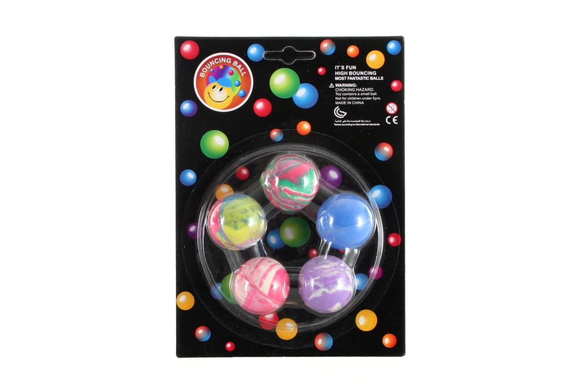 Een leuke set van vijf gevlekte stuiterballen voor kinderen vanaf 3 jaar. Elke bal heeft een diameter van ca. 3 cm en is ideaal om thuis en buiten mee te spelen. Geweldig cadeau voor de ontwikkeling van motorische vaardigheden en eindeloos speelplezier.