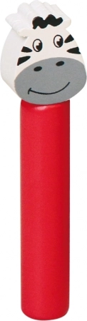 Druk op het kopje en kijk hoe de giraffe, het aapje, de leeuw en de zebra vrolijk uit de boot opspringen. Ideaal spel om het principe actie–reactie te begrijpen.