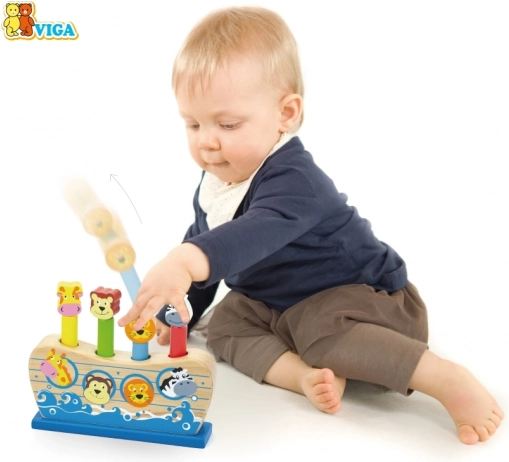 Ontdek eenvoudige en verslavend leuke pret met het houten speelgoed van Viga, waarbij kinderen door op het kopje te drukken de diertjes weer omhoog laten “katapulteren”. Dit actieve spel ontwikkelt uitstekend de fijne motoriek, geduld en het principe van actie–reactie. Dankzij de opvallende kleuren en het overzichtelijke design oefenen kinderen gemakkelijk het onderscheiden van kleuren en het benoemen van dieren.