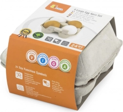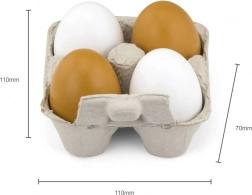 Inclusief kartonnen houder voor 4 eieren, die het opbergen vergemakkelijkt en het spel extra echt maakt.