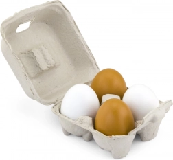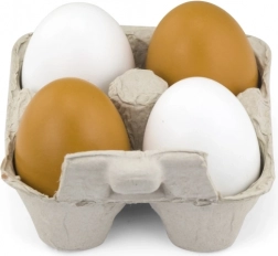Vier houten eieren in twee kleuren geven kinderen een authentieke ervaring met koken en winkelen.