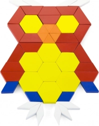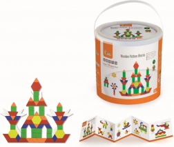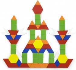 Het grote aantal platte houten blokken in diverse vormen en kleuren stimuleert de fantasie en de ontwikkeling van ruimtelijk inzicht. Kinderen kunnen patronen, dieren en complete afbeeldingen leggen.