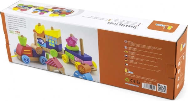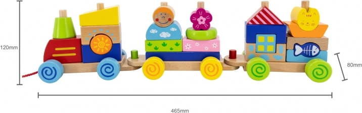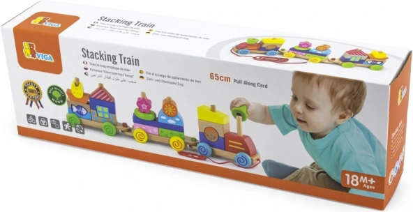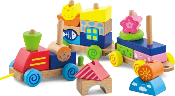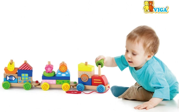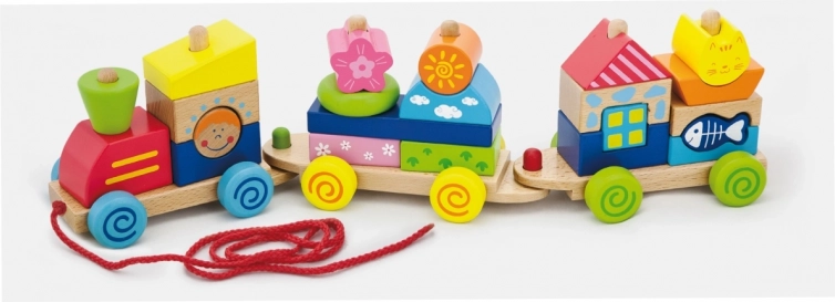 Dit kwalitatieve houten trekspeelgoed-treintje met drie wagonnetjes biedt talloze mogelijkheden om kleurrijke vormen te stapelen en te herschikken. Kinderen oefenen hand-oogcoördinatie, leren kleuren en vormen herkennen en genieten ondertussen van het trekken van het treintje door het huis.