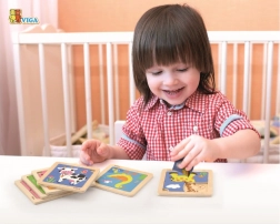 Dankzij de heldere kleuren en het duidelijke motief stimuleert de puzzel het herkennen van kleuren en vormen, ontwikkelt geduld en zorgt voor natuurlijke ontdekkingsvreugde. Het compacte formaat van ca. 12 × 12 cm is geschikt voor thuis en onderweg, en de houten uitvoering garandeert een lange levensduur.