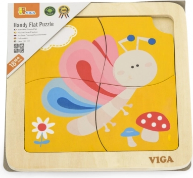 Deze schattige houten puzzel met een kleurrijke vlinder is een uitstekende keuze als eerste kennismaking met puzzels. Vier robuuste stukjes liggen prettig in kinderhandjes en worden gelegd in een stevige houten bodemplaat met voorbeeld. Eén stukje heeft een praktisch gat voor makkelijk uitnemen, zodat kinderen snel leren stukjes te hanteren en opnieuw te leggen.