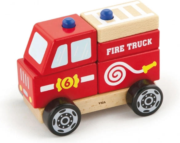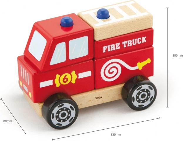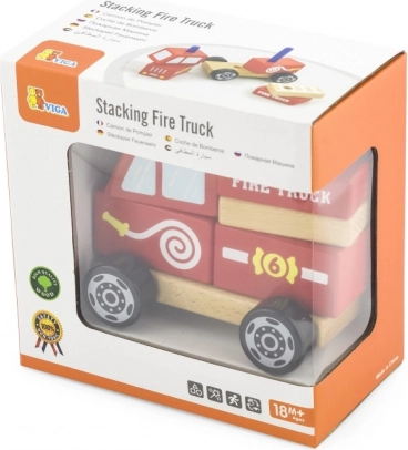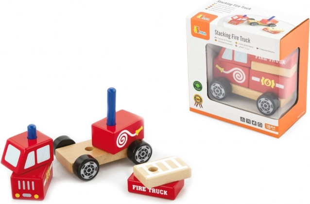 Stapeltjeer de afzonderlijke houten onderdelen op het chassis en maak je eigen brandweerauto. Kinderen trainen stap voor stap hun geduld en coördinatie.