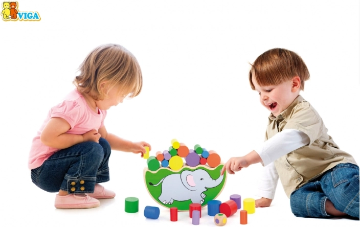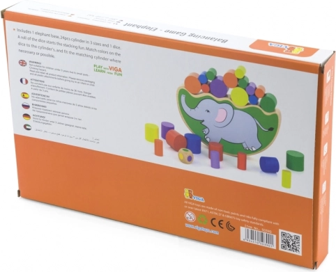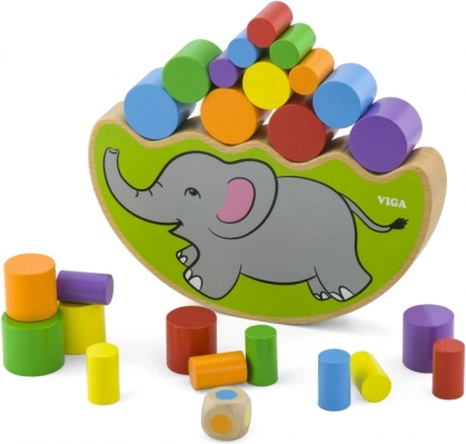 Een leuk houten spel voor kinderen vanaf 3 jaar dat de fijne motoriek, geduld en oog-handcoördinatie ontwikkelt. Spelers gooien met een gekleurde dobbelsteen en nemen of plaatsen een cilinder op de olifantenbasis volgens de gegooide kleur – zonder hem te laten kantelen!