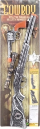 Deze leuke cowboyset geeft kinderen een authentieke spelervaring in de sfeer van het Wilde Westen. Het grote geweer van ca. 50 cm is uitgerust met een vizier, het pistool ligt prettig in de hand en dankzij het schoteffect voelt het spel nog realistischer aan – en dat allemaal zonder batterijen.