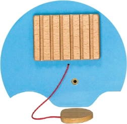 De geribbelde strip geeft bij het strijken met een stokje karakteristieke geluiden. Kinderen trainen greep, coördinatie en ritmegevoel.
