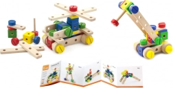 Deze kwalitatieve houten bouwset biedt kinderen eindeloze mogelijkheden om te creëren. Met 53 kleurrijke onderdelen, pennetjes, schroefjes en verbindstukken bouwen ze eenvoudig zowel simpele modellen als fantasierijke constructies. De set bevat een overzichtelijke illustratieve brochure die inspireert en stap voor stap door de eerste projecten leidt.