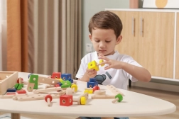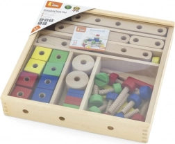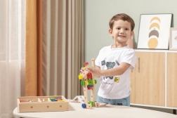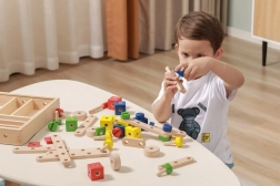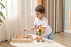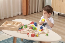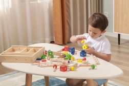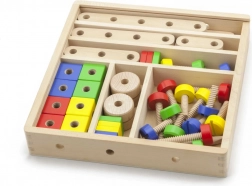 De bouwset ontwikkelt de fijne motoriek, oog-handcoördinatie en logisch én ruimtelijk denken. Natuurlijk hout in combinatie met vrolijke kleuren nodigt uit tot spel en leren door plezier. Alles is overzichtelijk opgeborgen in een box met transparant deksel, zodat de onderdelen makkelijk op te ruimen zijn en altijd binnen handbereik.