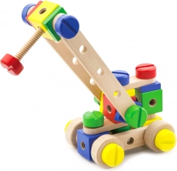 Ontdek de leuke en leerzame houten bouwset constructeur met 53 onderdelen en een illustratieve brochure voor eenvoudig bouwen. Stimuleert fijne motoriek, creativiteit en ruimtelijk inzicht. Ideaal voor kinderen vanaf 3 jaar, opgeborgen in een praktische box van 31 × 31 × 5,5 cm.