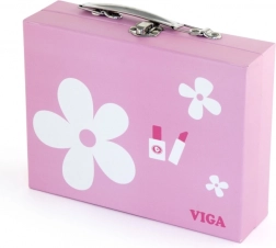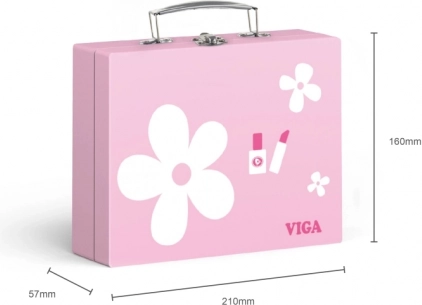Deze houten make-upset in koffer geeft kinderen plezier in het nadoen van volwassenen, en is tegelijkertijd volledig veilig. Alle onderdelen zijn kleurrijk, prettig vast te houden en opgeborgen in een stevige draagkoffer, zodat je ze makkelijk kunt opruimen en meenemen.