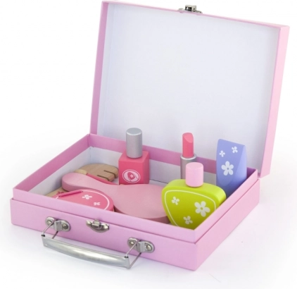 Een stijlvolle houten beautyset voor kleine diva’s in een praktische koffer die elk kind vanaf 3 jaar zal verrassen. Bevat alles voor realistisch salonspeelplezier – kam, spiegel, nagellak, lipstick, parfum en meer accessoires. Dankzij het robuuste hout en de glad afgewerkte onderdelen is het spel veilig en duurzaam. Stimuleert fantasie, fijne motoriek en sociale vaardigheden.