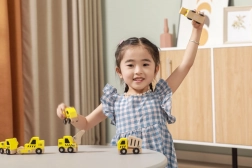 Rollende wielen en eenvoudige beweegbare elementen ontwikkelen coördinatie, handigheid en creatief spel bij kinderen vanaf 18 maanden.