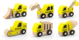 - 6 stuks in de set – mix van favoriete bouwmachines (kiepwagen, graafmachine, kraan, wals, mixer, shovel).