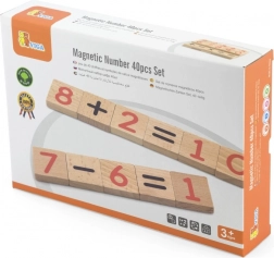 Magnetische houten cijfers zijn het ideale hulpmiddel voor het leren van basisrekenvaardigheden voor kinderen vanaf 3 jaar. De set bevat 40 stuks magneten met cijfers en symbolen die gemakkelijk kunnen worden opgeborgen in een praktische stoffen zak.