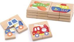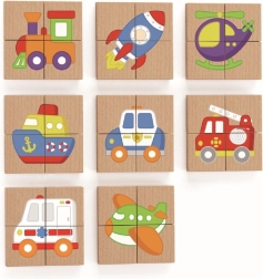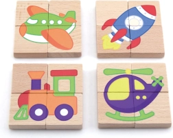 Deze puzzel helpt kinderen hun logisch denken te ontwikkelen door het combineren van kleurrijke afbeeldingen tot complete vervoersmiddelen.