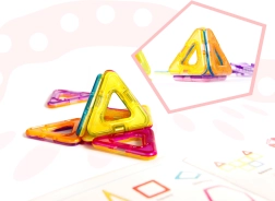 Één bouwset, veel mogelijkheden – magnetische delen van verschillende vormen laten u 3D en platte vormen creëren, allemaal dankzij de sterke magneten.