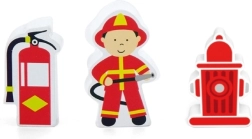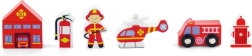Bevat brandweerlieden, een brandweerkazerne, een brandblusser, een hydrant, een brandweerauto en een helikopter, allemaal in levendige kleuren voor spannend spel.
