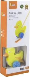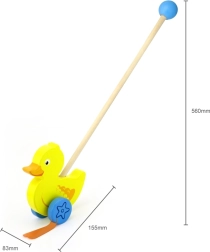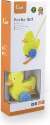 Houten duw-eend aan een stok is een eenvoudig maar effectief speelgoed waar elk kind dol op zal zijn. Het is een klassiek speelgoed dat veel voordelen biedt. Het schattige gele eendje beweegt energiek met zijn pootjes tijdens het lopen, wat kinderen motiveert om te wandelen. Het speelgoed is verpakt in een esthetische doos met een venster waardoor je het eendje kunt zien. Binnenin zit een stok met een handgreep die perfect in een kinderhand past. De stok is niet permanent bevestigd, wat het opbergen vergemakkelijkt. Het hele speelgoed is gemaakt van beukenhout en geverfd met niet-giftige verven in levendige kleuren die de aandacht trekken en uitnodigen tot spelen, wat veel speelplezier brengt.