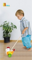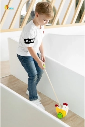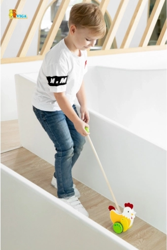 Deze rollende loopwagen in de vorm van een kip van Viga is ideaal voor kinderen die leren lopen. Het kleurrijke ontwerp trekt de aandacht en stimuleert de ontwikkeling van de coördinatie.