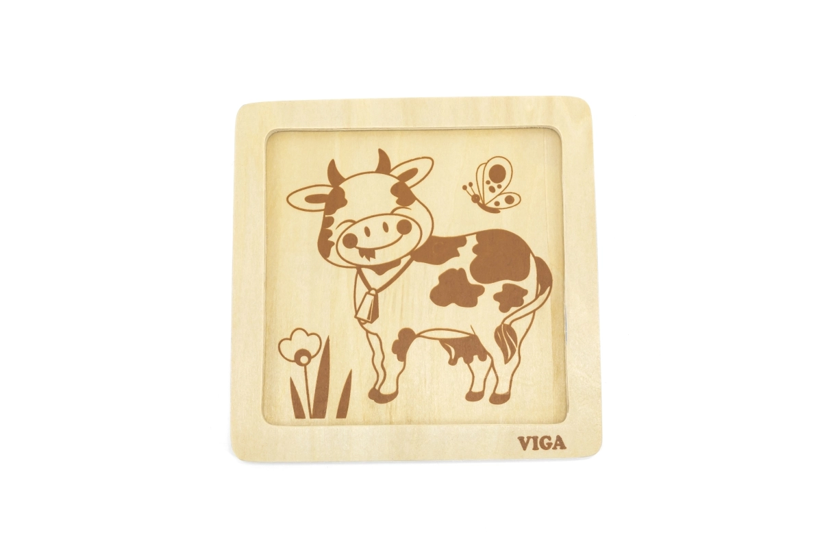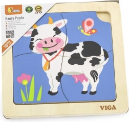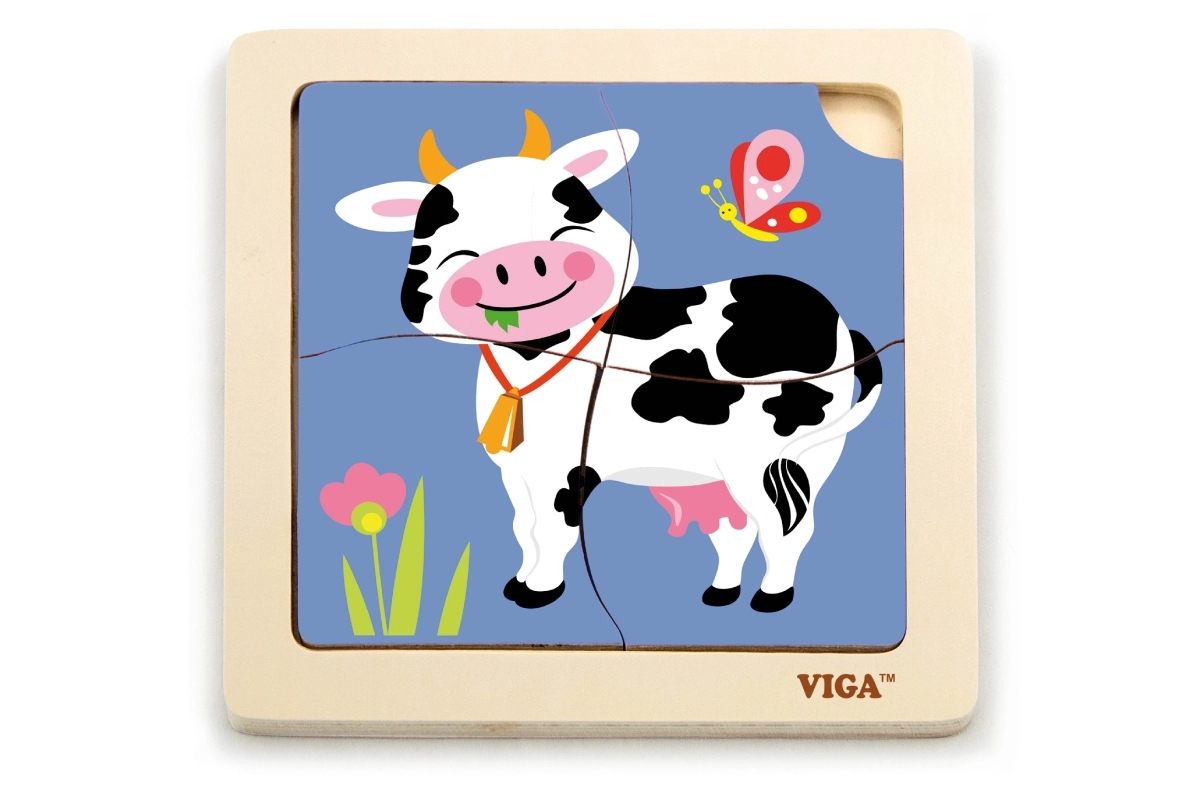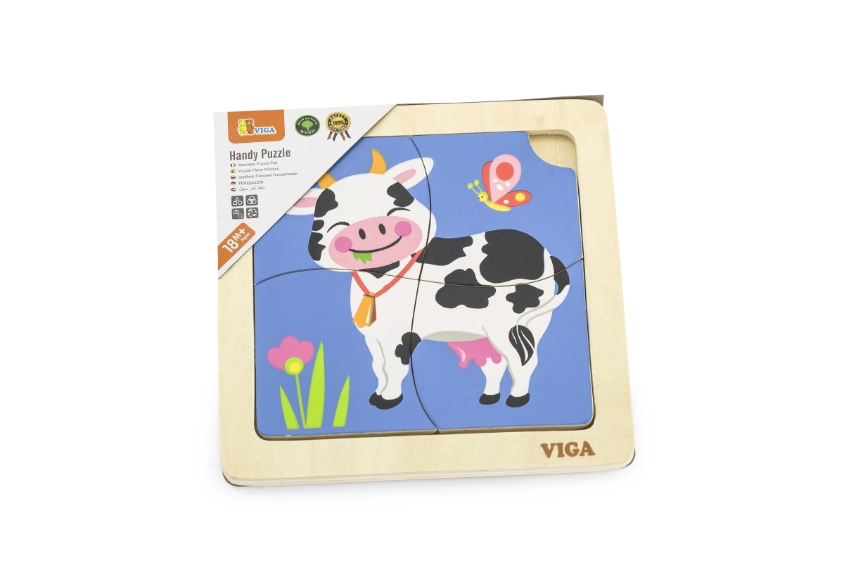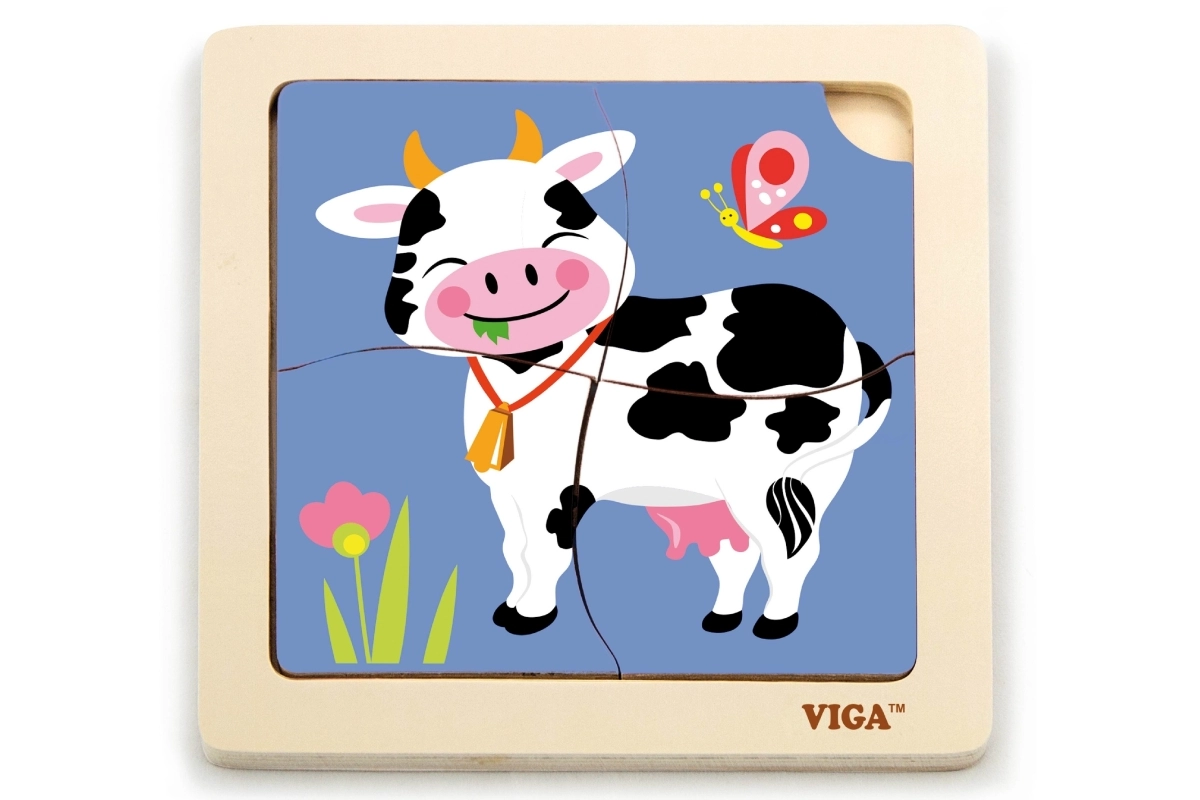 De houten koeienpuzzel van Viga biedt jonge kinderen een geweldige manier om vormen te leren herkennen en de fijne motoriek te ontwikkelen. De set bevat 4 puzzelstukjes en een afbeelding die het kind helpt bij het leggen. De puzzel is zorgvuldig vervaardigd uit veilige houten materialen en beschilderd met levendige, niet-giftige verven. Elk spelmoment met deze puzzel zit vol plezier en ontwikkeling voor je kind.
