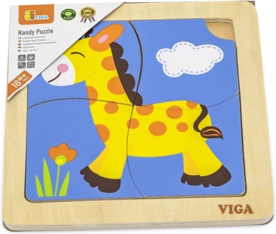 De houten puzzel van het merk Viga, geschikt voor kinderen vanaf 12 maanden, is een ideale speelgoedkeuze voor thuis en in de kinderopvang. Het bevat vier thematische stukken en een basisbord waarop kinderen de afbeelding volgens de tekening kunnen leggen. Veilige verven en natuurlijke materialen zorgen voor veiligheid en plezier.