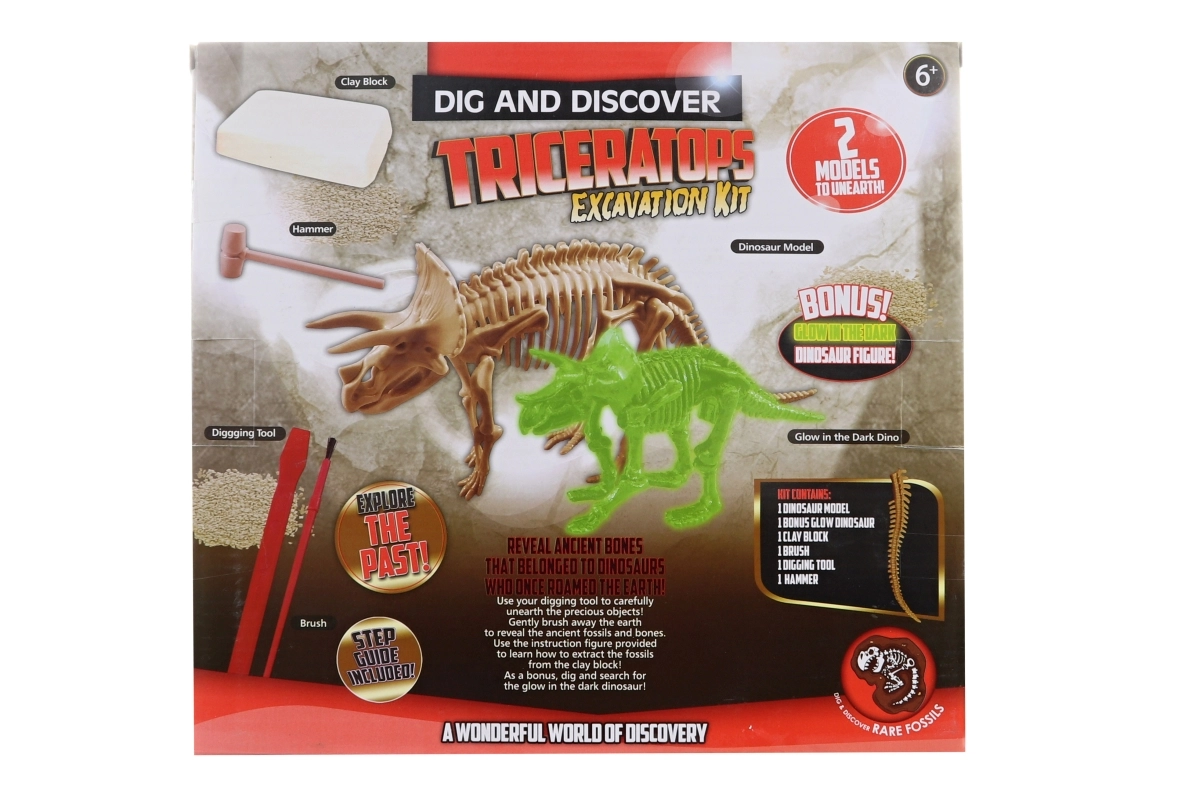 Ontdek de oertijd met een creatieve set voor kleine archeologen! De set bevat 2 dinosaurussen – een triceratops-skelet met 10 delen en een figuur die in het donker licht. Inclusief uitbeitelblok, hamertje, kwastje en beitel voor een authentieke opgraafervaring. Ideaal voor plezier en leren in één voor kinderen vanaf 6 jaar.