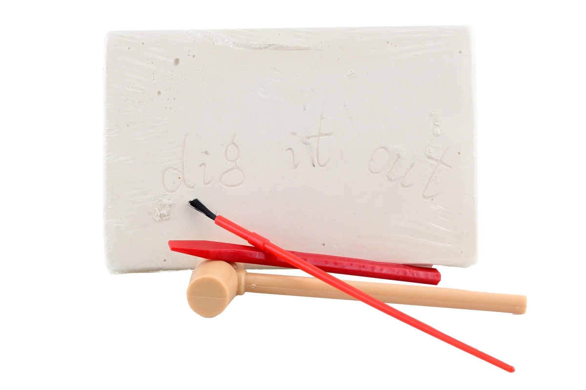 - Complete uitrusting: uitbeitelblok, hamertje, kwastje, beitel