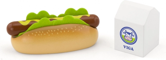 Deze hoogwaardige houten set van VIGA biedt kinderen realistisch kookspel. De hotdog met broodje, sla en mosterd samen met het “melkpak” stimuleren creativiteit en leren kinderen de basis van sociaal spel. Dankzij de stevige houten afwerking is de set ideaal voor dagelijks spelen.
