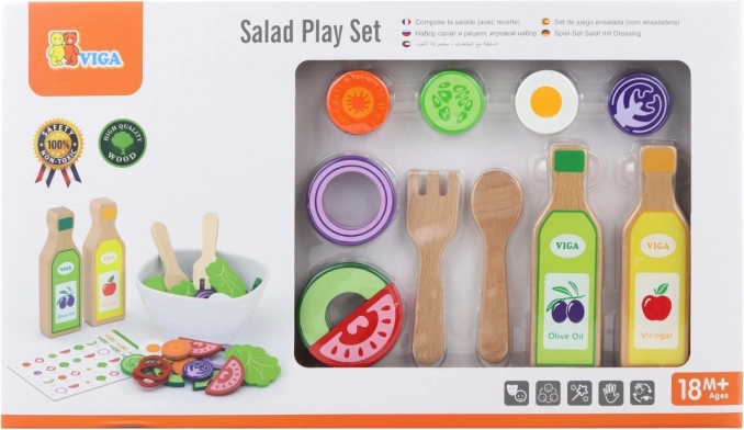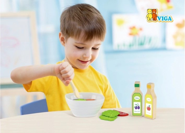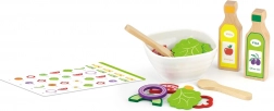 Deze kwalitatieve houten saladeset biedt kinderen realistisch keukenspel. Dankzij de uitgebreide uitrusting kunnen kleine koks hun eigen salade bereiden, ingrediënten in de kom mengen en serveren met behulp van het bestek. Het spel stimuleert gezonde gewoonten en leert op een natuurlijke manier verschillende soorten groenten herkennen.