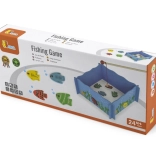 De set bevat een vijver van ca. 35 × 13 × 5 cm, vier magnetische hengels voor samen spelen en 20 visjes met cijfers, die vroege rekenvaardigheid en sorteren ondersteunen. Dankzij de magnetische uiteinden is het vangen van de visjes intuïtief en leuk.