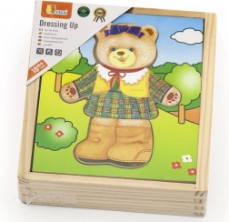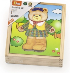 Een schattige houten puzzelset van het merk Viga waarmee kinderen zes verschillende afbeeldingen van een berenmeisje kunnen samenstellen, in diverse stemmingen en outfits. Ondersteunt fijne motoriek, logisch denken en emotieherkenning, terwijl het praktische doosje alle stukjes netjes bij elkaar houdt.