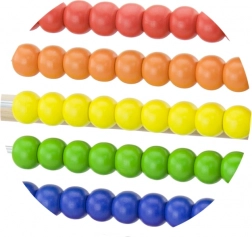 Tien rijen helder gekleurde kralen ondersteunen visuele waarneming, sorteren en eerste rekenopdrachten.