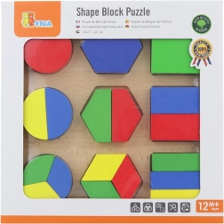 Deze houten educatieve inlegpuzzel van VIGA is het ideale speelgoed voor de eerste ontdekking van vormen en kleuren. De robuuste houten plaat met precieze uitsparingen en 18 kleurrijke stukjes leert kinderen sorteren, oog-handcoördinatie en ontwikkelt het ruimtelijk inzicht.