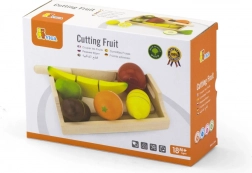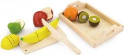 Het fruit en het mes zijn gemaakt van natuurlijk hout, wat veiligheid en duurzaamheid tijdens het spel garandeert.