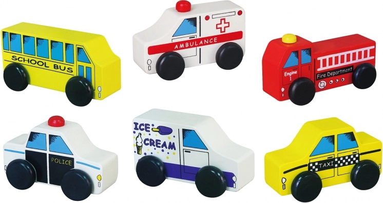 Houten autootjesset voor kinderen biedt zes verschillende voertuigen voor een speelse en leerzame ervaring. Perfect voor het ontwikkelen van de verbeelding en het leren kennen van stadsdiensten.