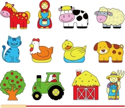 De blokken stellen verschillende boerderijvormen voor, zoals dieren, een tractor, een schuur en meer, en stimuleren creatief spel en het vertellen van verhalen.