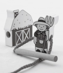 De VIGA Houten Rijgblokken Boerderij zijn ontworpen om elk kind te boeien. Deze set bevat 12 kleurrijke blokken met boerderijmotieven die je kind aan elkaar kan rijgen met de meegeleverde veter. Er zijn verschillende vormen, zoals een koe, eend, kat, kip, hond, paard, schaap, boer en zijn vrouw, tractor, schuur en appelboom.