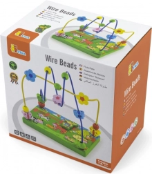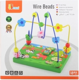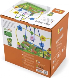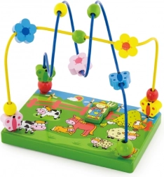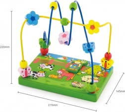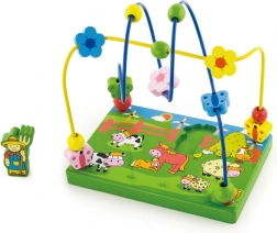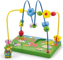 Het speel-labyrint met kralen op draden stimuleert de fijne motoriek, coördinatie en logisch denken. De stevige houten basis met boerderijthema en de magnetische boerfiguur nodigen uit tot creatief spel en ontdekken. Ideaal vanaf 18 maanden.
