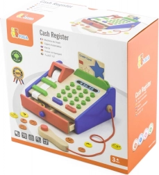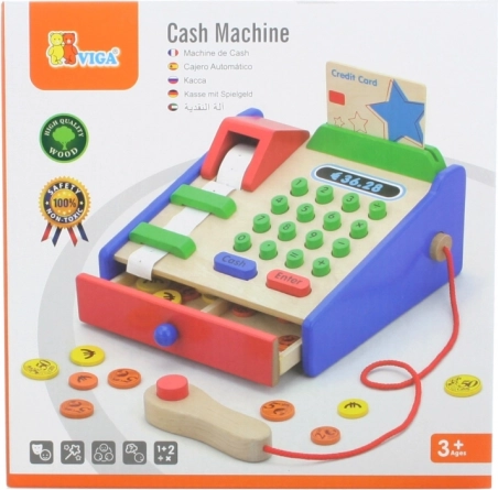 Deze kleurrijke houten kassa voor kinderen biedt een realistische winkelervaring – het indrukken van toetsen, het openen van het laatje met “contant geld”, betalen met kaart of met de scanner en het “printen van bonnetjes”. Dankzij de doordachte accessoires oefenen kinderen eenvoudig rekenen, communicatie en samenwerking.