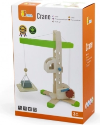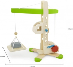 Deze houten kraan met lier biedt kinderen een realistische bouwervaring. De zwenkarm, handmatige opwinding en het katrolsysteem maken het mogelijk om kleine objecten veilig te heffen en te verplaatsen. Natuurlijk hout, gladde randen en groene details benadrukken het tijdloze design en de duurzaamheid van het speelgoed.