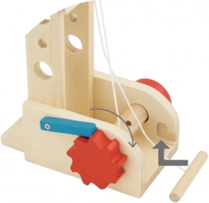 Met eenvoudig draaien aan het opwindwiel kunnen kinderen de lading omhoog hijsen en neer laten. Het mechanisme bevordert de oog-handcoördinatie en biedt een soepele, veilige werking.