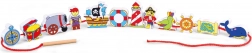 Het rijgen van houten onderdelen aan een veter stimuleert een precieze greep, oog-handcoördinatie en het geduld van kinderen vanaf 2 jaar.