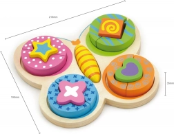 Vrolijke kleuren en de vlindervorm houden de aandacht van kinderen vast en ondersteunen spelenderwijs het leren van kleuren en vormen.