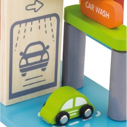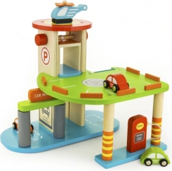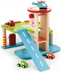 Ontdek de leuke houten garage met 3 autootjes en een helikopter, die zowel de fantasie als de fijne motoriek stimuleert. Inclusief landingsplatform, werkende lift en realistische details voor uren speelplezier voor kinderen vanaf 3 jaar.