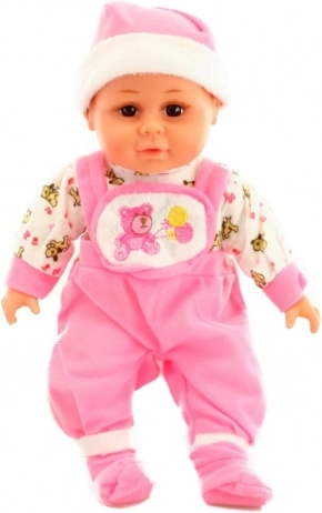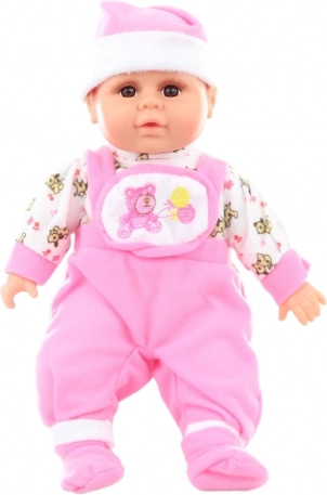 Een schattige babypop met zacht lijfje die geluid maakt, bezorgt elke kleine verzorger plezier. Bij het indrukken van het lijfje laat ze realistische geluiden horen – lachen, huilen, “mama” en “papa”. Ze draagt een roze pyjama met klittenband, waardoor aan- en uitkleden eenvoudig is. Ideaal voor rollenspel in de zorg en het ontwikkelen van de fijne motoriek.